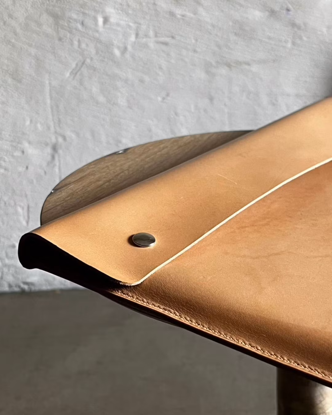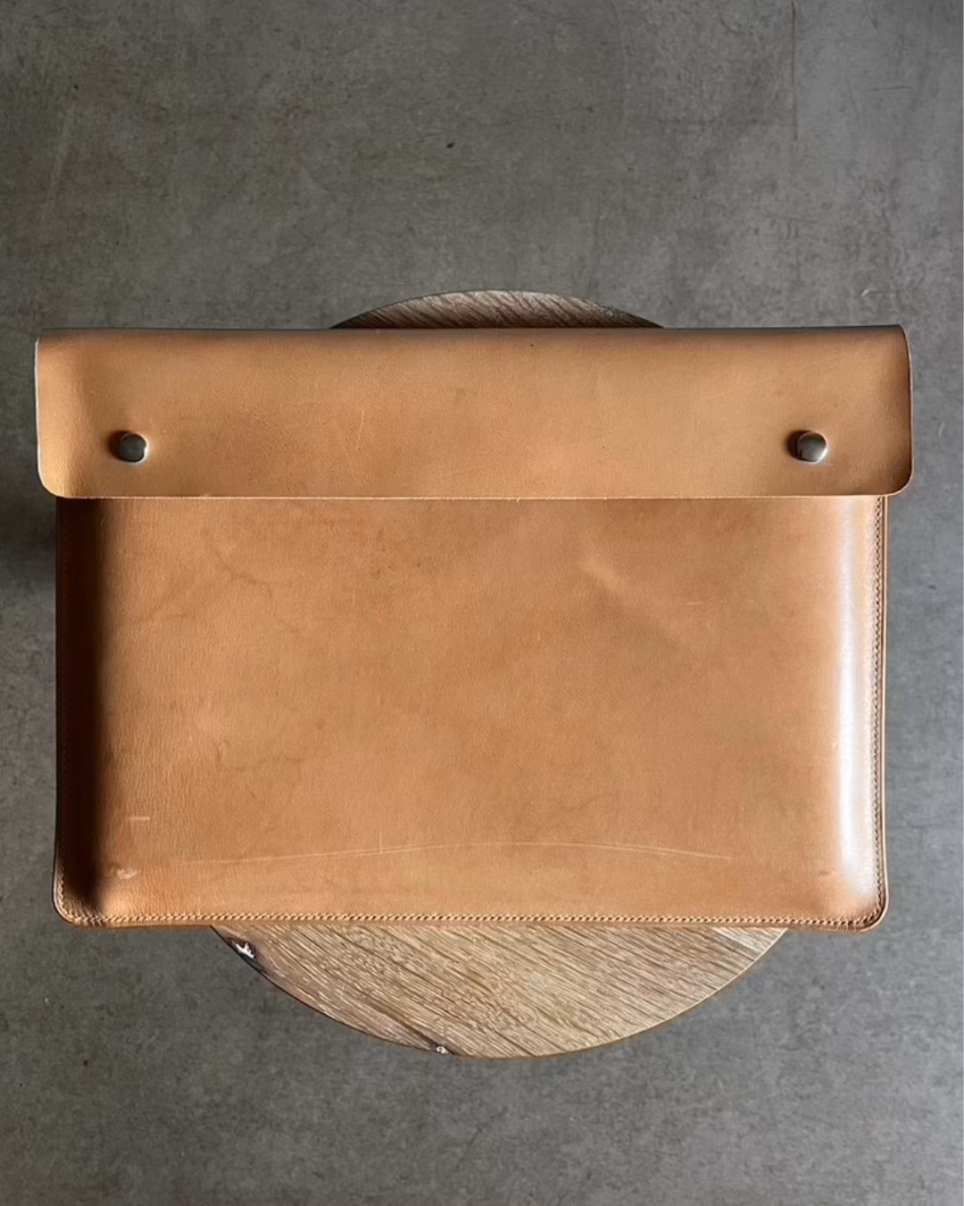 Tillverkad i vegetabiliskt garvat skinn från Tärnsjö Garveri. Stängs med två stycken tryckknappar.
